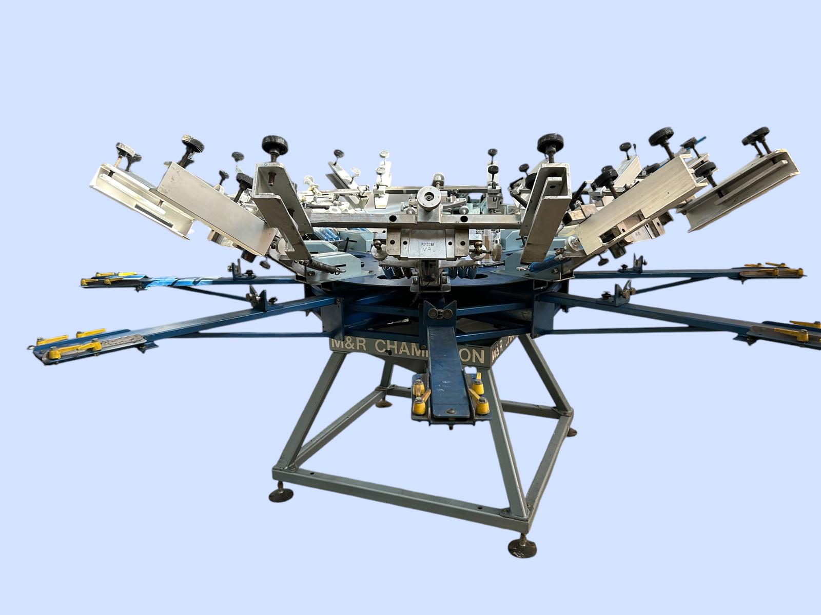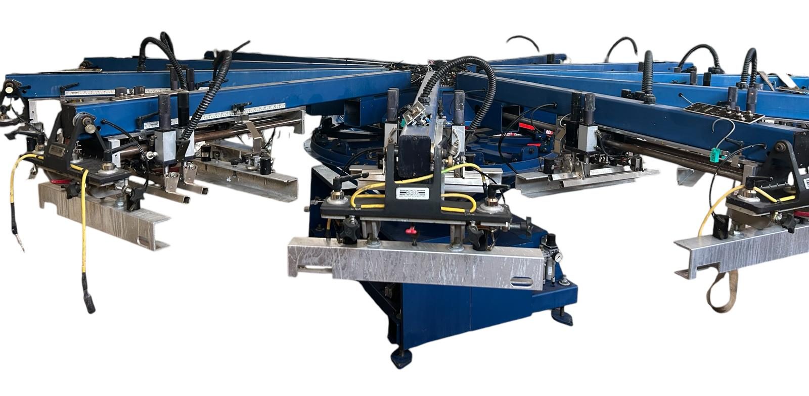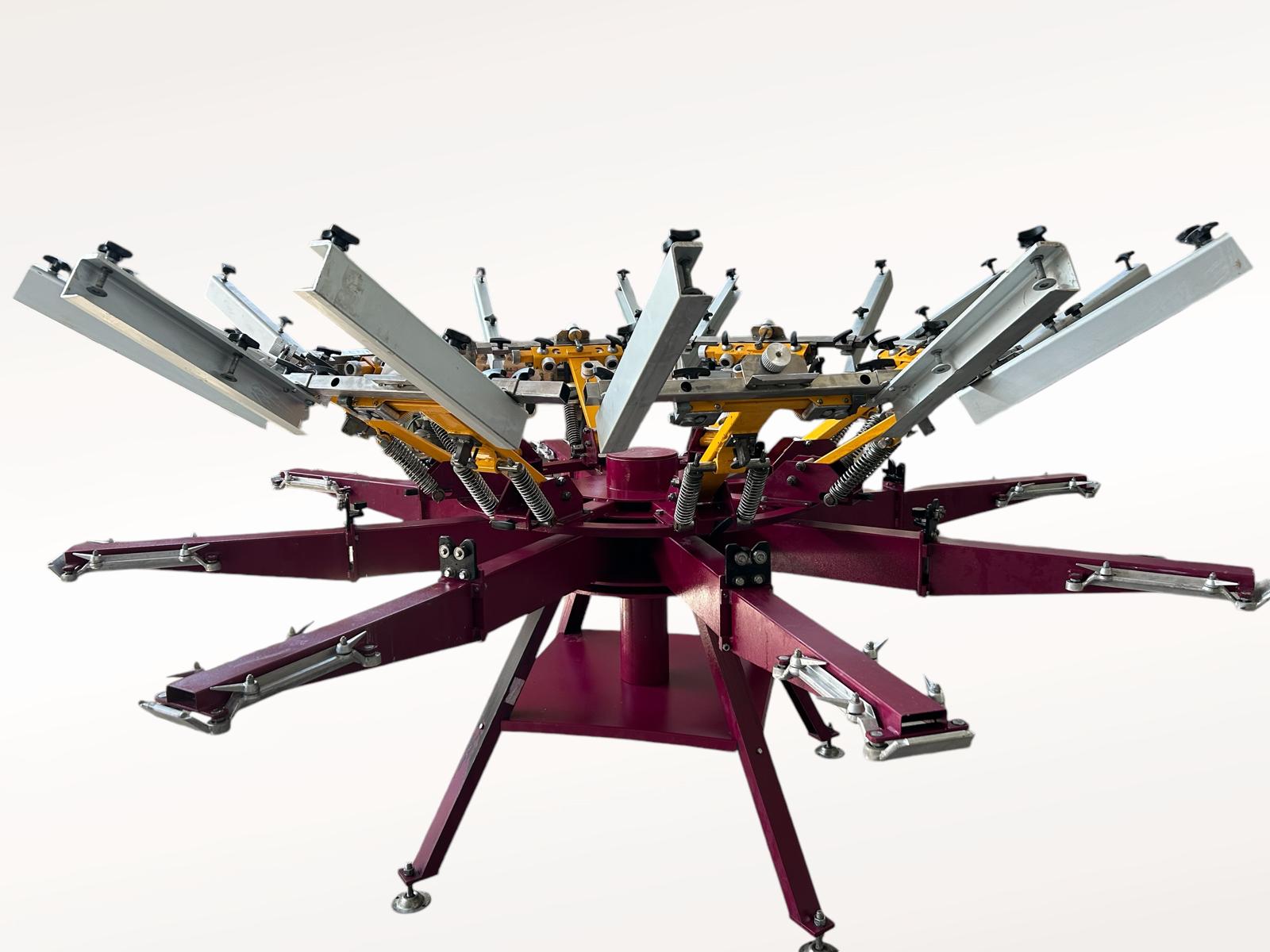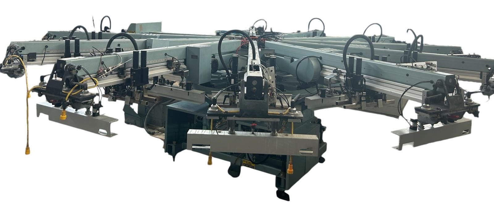 Macchina automatica, 10 colori/12 sagome, formato stampa 45×50, completamente revisionata. Completa di tutti gli accessori e di porta telai pneumatici, aggancio rapido delle tavole e gruppi stampa motorizzati. Ricondizionata e portata alle normative di sicurezza attuali. Venduta con garanzia e installata dai nostri tecnici.